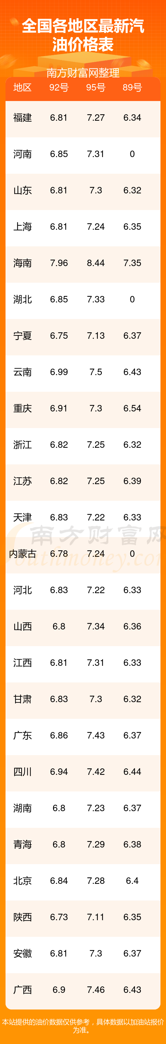 全国95号汽油12月16日的最新价格是12月9日油价调整后的价格,当中,平均价格为7元/升,最低的是陕西,价格7.11元/升,最高的是海南,价格8.44元/升。,下一轮油价调整时间12月22日24时,距离现在还有6.65天。