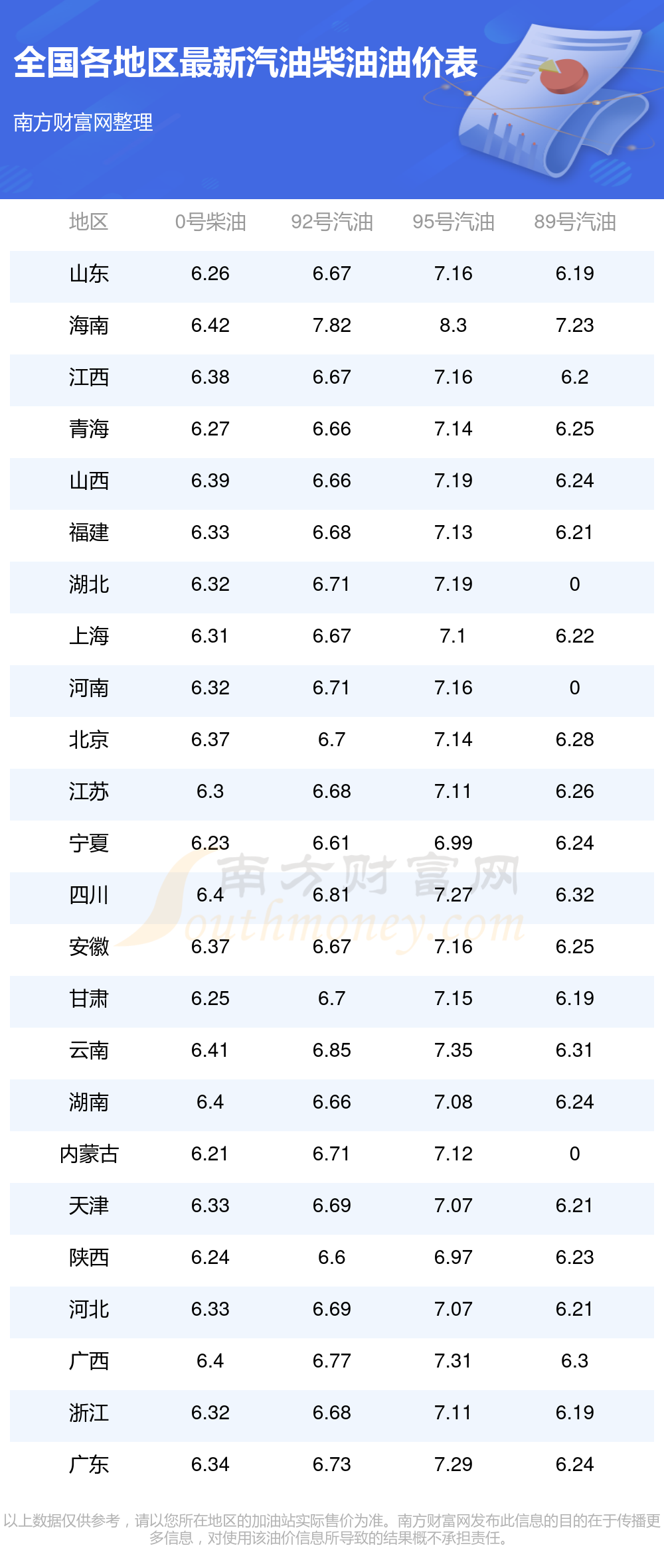 油价数据仅供参考,请以您所在地区的各加油站报价为准。