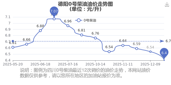 12月30日,汽油、柴油每升最新价格为(12月23日调整后的价格):92号汽油为6.81元,降了0.13元,降幅达1.87%;95号汽油为7.27元,降了0.15元,降幅达2.02%;89号汽油为6.32元,降了0.12元,降幅达1.86%;0号柴油为6.4元,降了0.14元,降幅达2.14%。下一轮油价调整时间12月31日24时,距离现在还有0天。