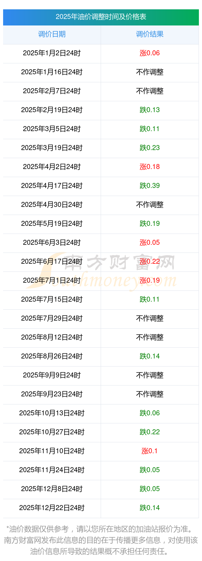 油价调整最新消息:陕西汽油、柴油12月30日每升的价格是多少?具体为:92号汽油为6.6元;95号汽油为6.97元;89号汽油为6.23元,减了0.12;0号柴油为6.24元,本轮调整时间为12月23日。下一轮油价调整时间12月31日24时。