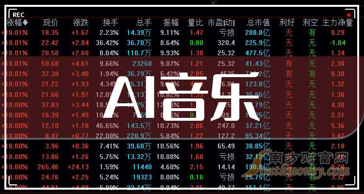 据南方财富网概念查询工具数据显示,AI音乐股票龙头有: