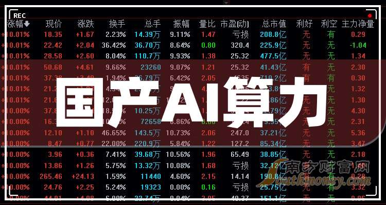 据南方财富网概念查询工具数据显示,国产AI算力公司上市龙头有: