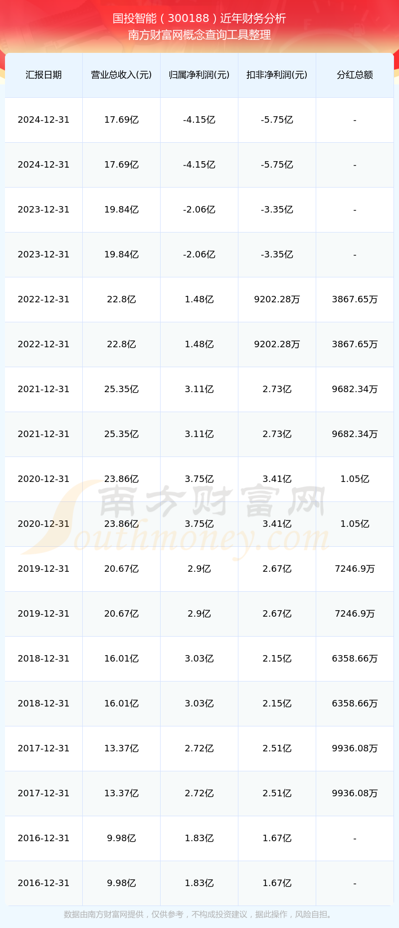 国投智能最新一次公布的分红方案为10派0.45元。本次权益分派股权登记日为2023年6月15日,除权除息日为2023年6月16日,派息日为2023年6月16日。