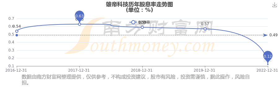 雄帝科技最新一次公布的分红方案:10转3派0.3元。