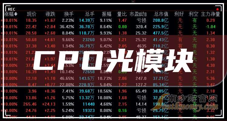 CPO光模块概念龙头有哪些?据南方财富网概念查询工具数据显示,CPO光模块概念龙头有: