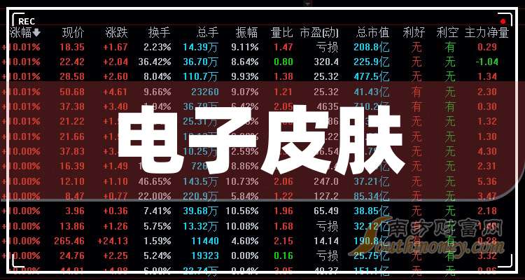 据南方财富网概念查询工具数据显示,电子皮肤股票的龙头有: