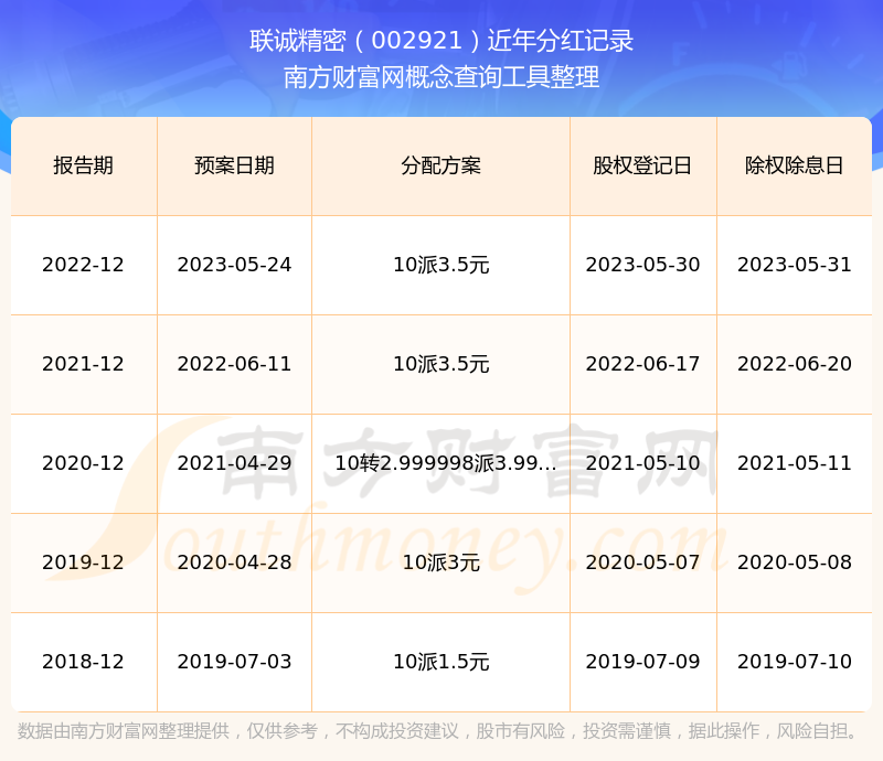 联诚精密最新一次公布的分红方案:10派3.5元。