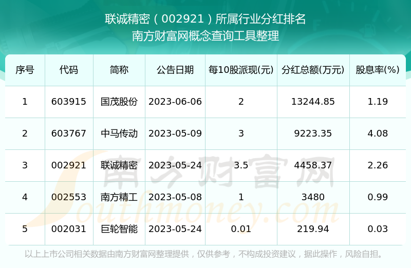 按照南方财富网趋势选股系统统计,联诚精密所属行业为汽车零部件行业,汽车零部件行业分红排名情况如下表: