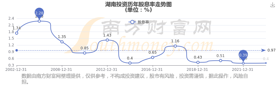 近年湖南投资年度股息率走势如下图: