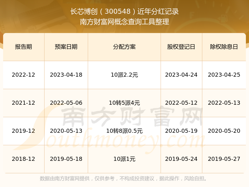 长芯博创最新一次公布的分红方案:10派2.2元。