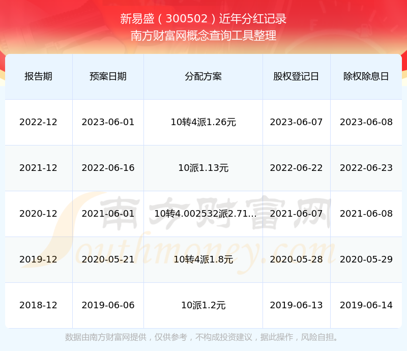 新易盛最新一次公布的分红方案:10转4派1.26元。