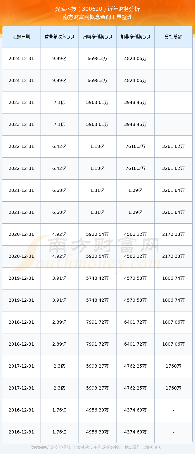 光库科技公司2024年实现营业收入9.99亿元,同比增长40.71%;净利润6698.3万元,同比增长12.32%;毛利率33.88%。