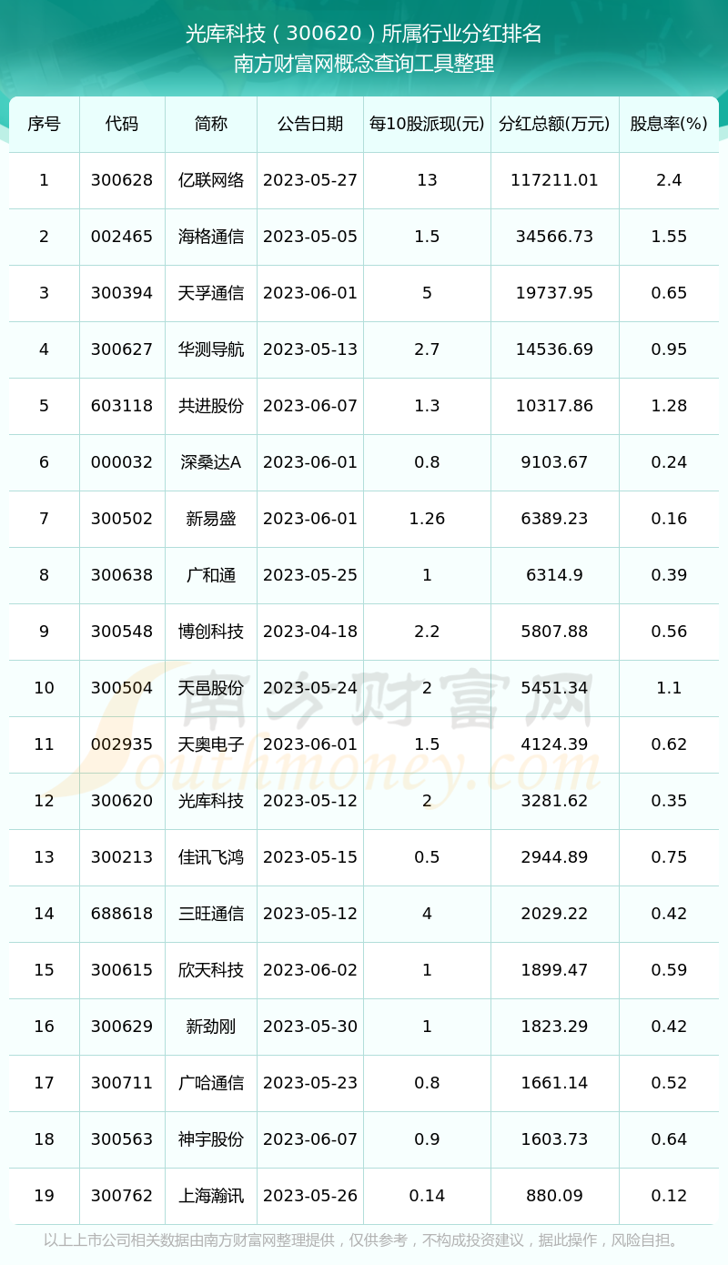 按照南方财富网趋势选股系统统计,光库科技所属行业为光纤激光器行业,光纤激光器行业分红排名情况如下表: