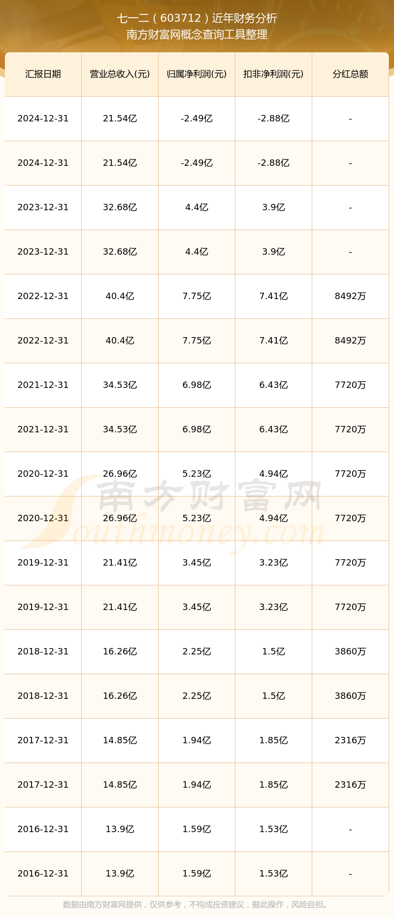 七一二2024年总营收21.54亿,同比增长-34.09%;净利润-2.49亿,同比增长-156.58%;销售毛利率31.06%。