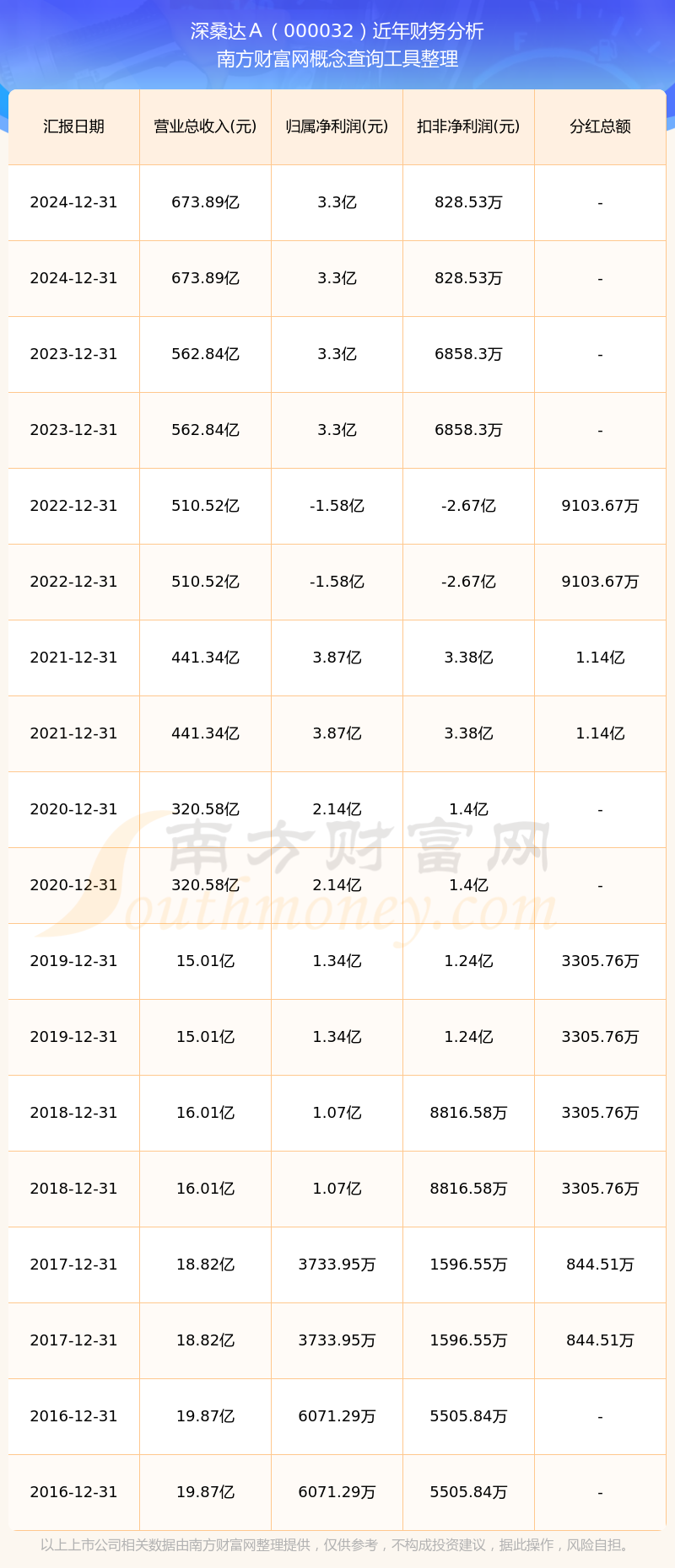 2024年报显示,深桑达A实现营收673.89亿,同比增长19.73%;净利润3.3亿,同比增长0.03%;毛利率10.18%。