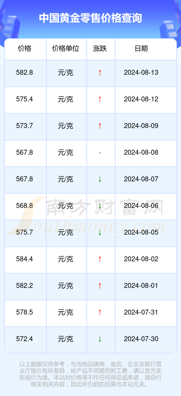 2024年8月13日中国黄金今日零售价格(多少钱一克)