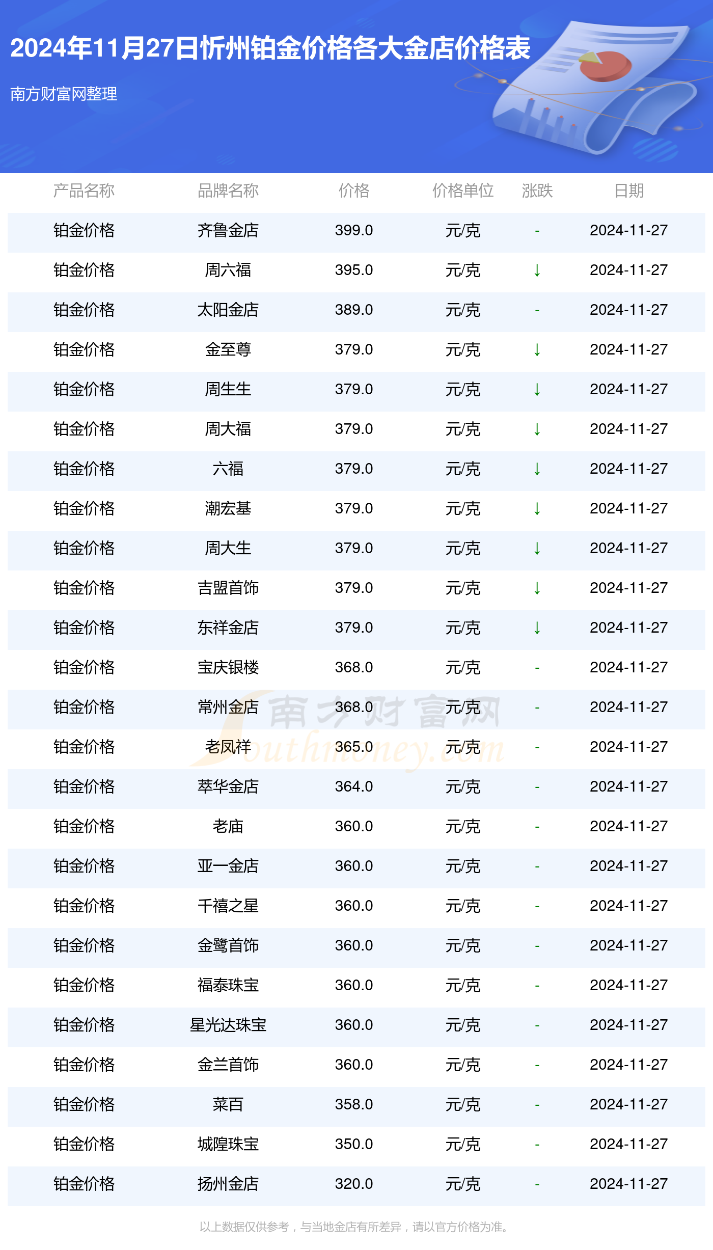 忻州各大金店铂金价格查询(2024年11月27日)