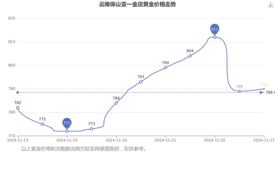 今日云南保山亚一金店黄金价格是790.0元/克。