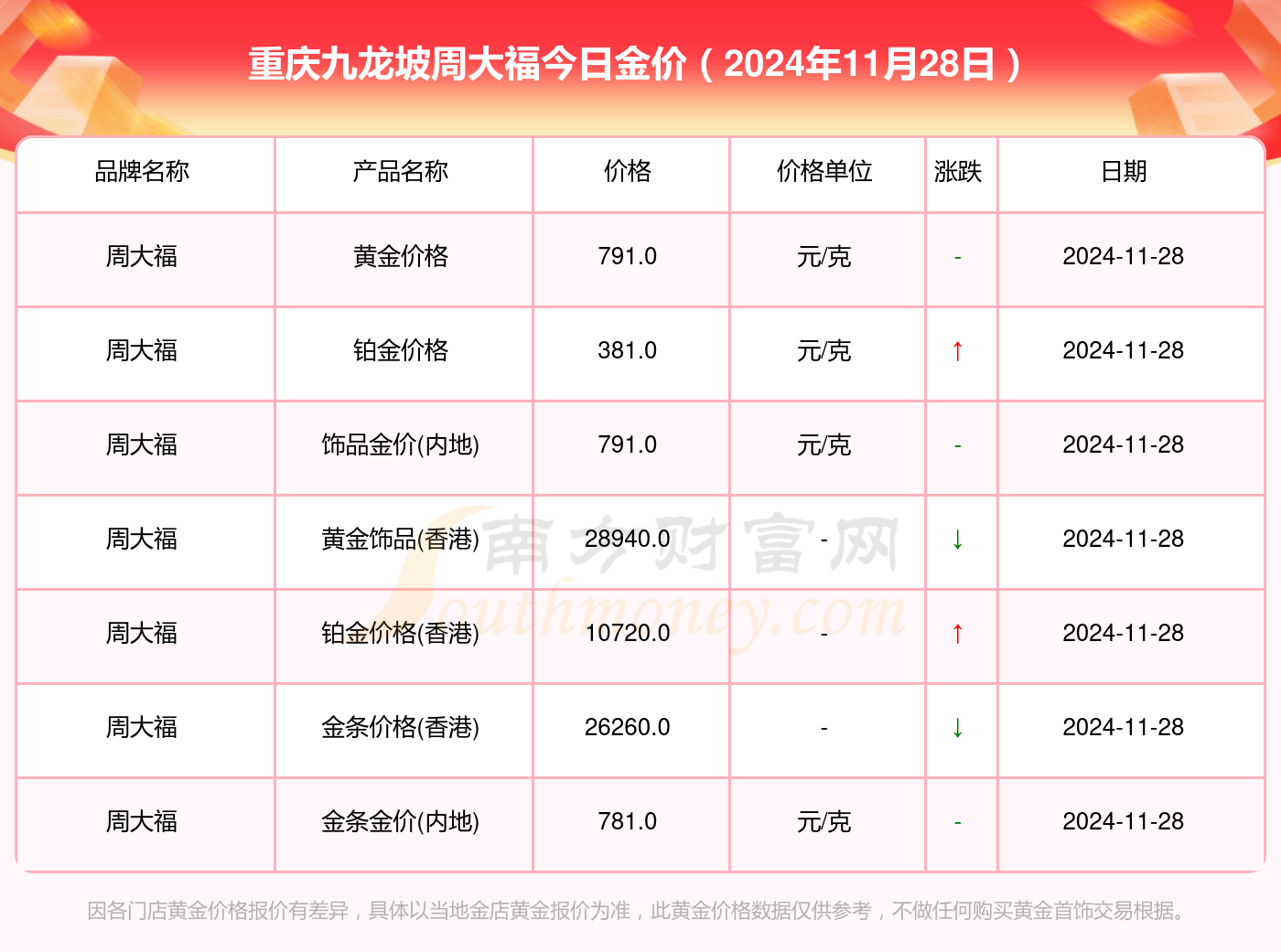 因各门店黄金价格报价有差异,具体以当地金店黄金报价为准,此黄金价格数据仅供参考,不做任何购买黄金首饰交易根据。
