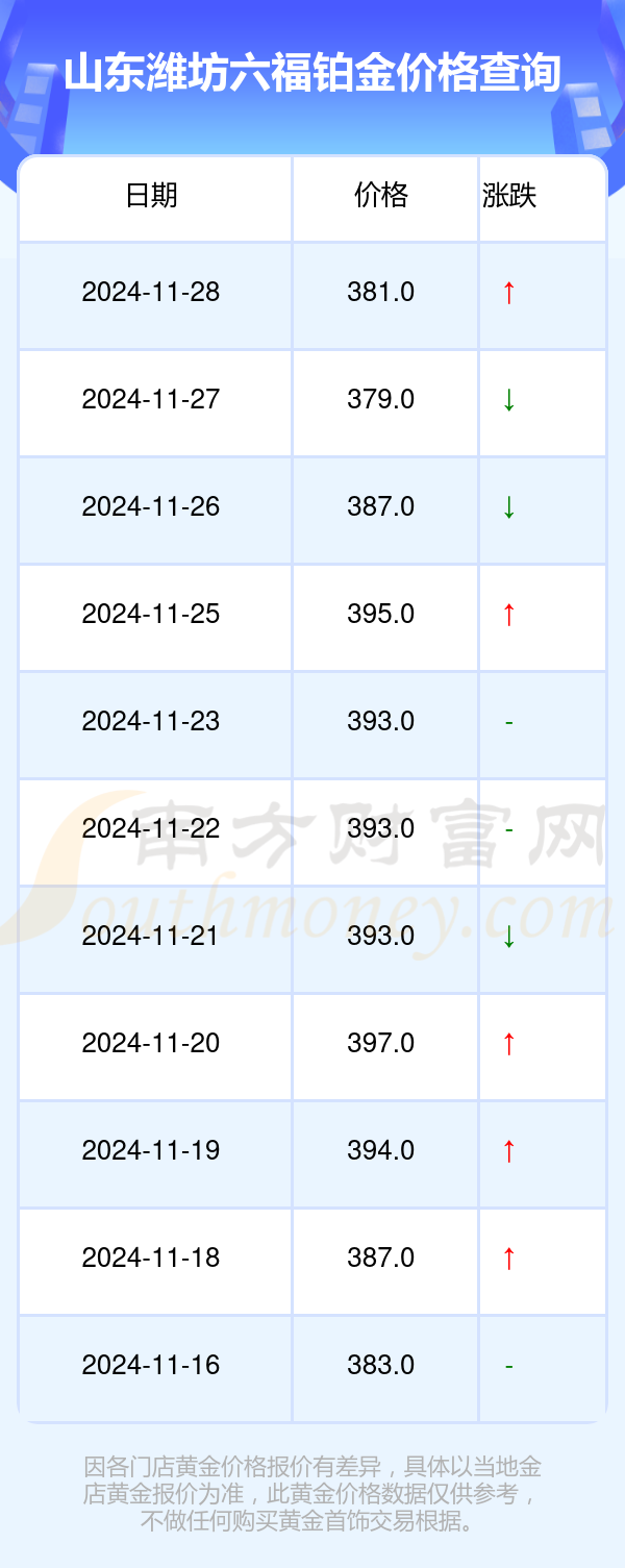 2024年11月28日山东潍坊六福今日铂金价格(多少一克)