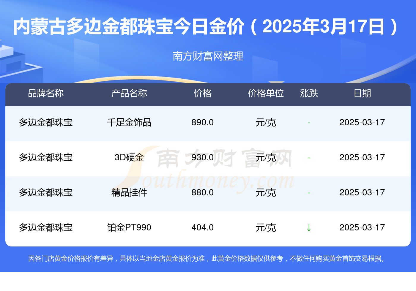 以上数据仅供参考,与当地金店有所差异,请以实际价格为准。