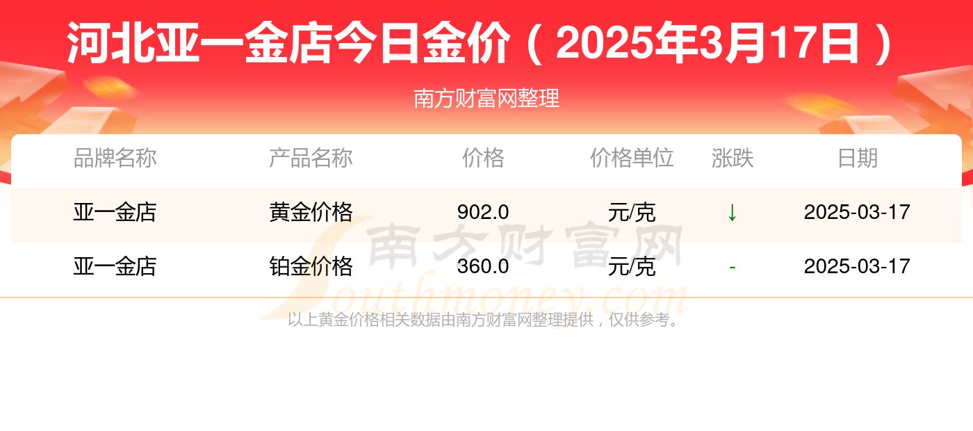 2025年3月17日河北亚一金店今日金价(多少钱一克)