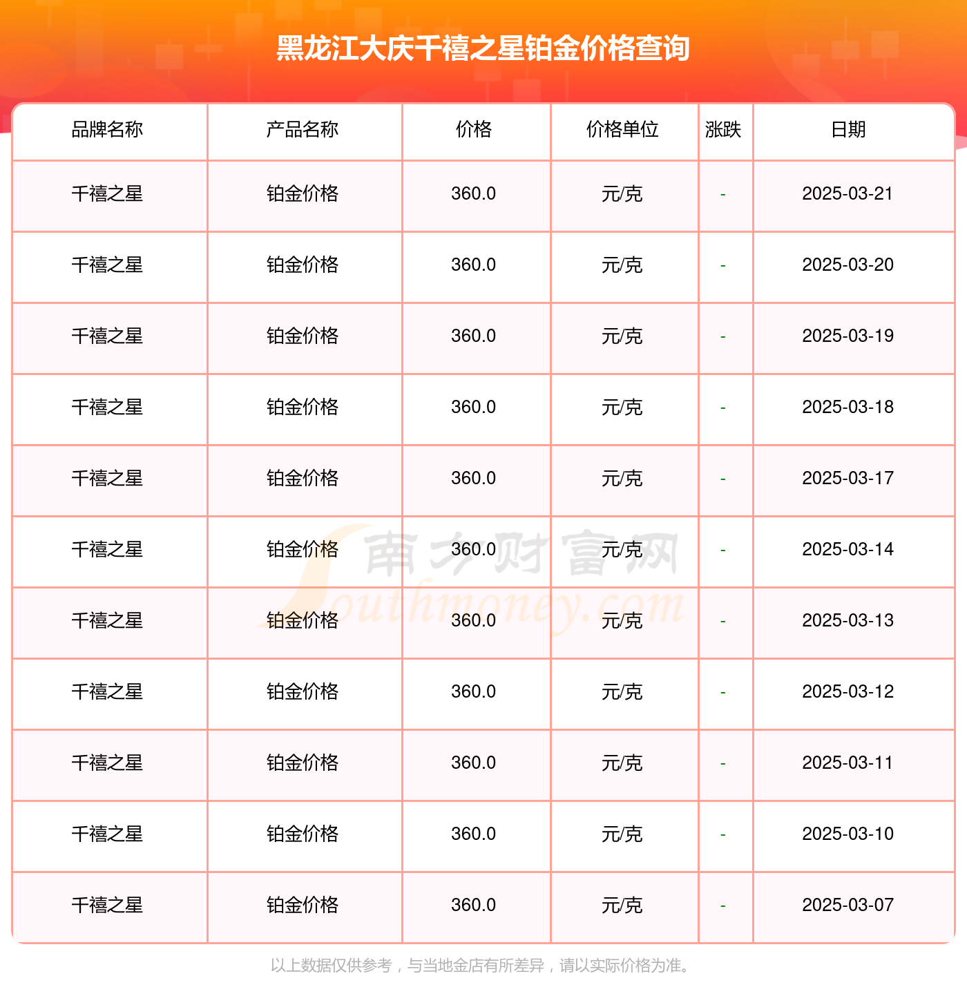 以上数据仅供参考,与当地金店有所差异,请以实际价格为准。