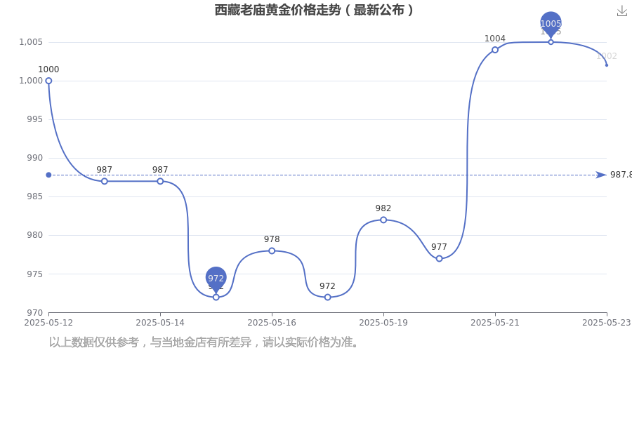 1002.0元/克,这是西藏老庙于 2025年5月25日所定的黄金价格。