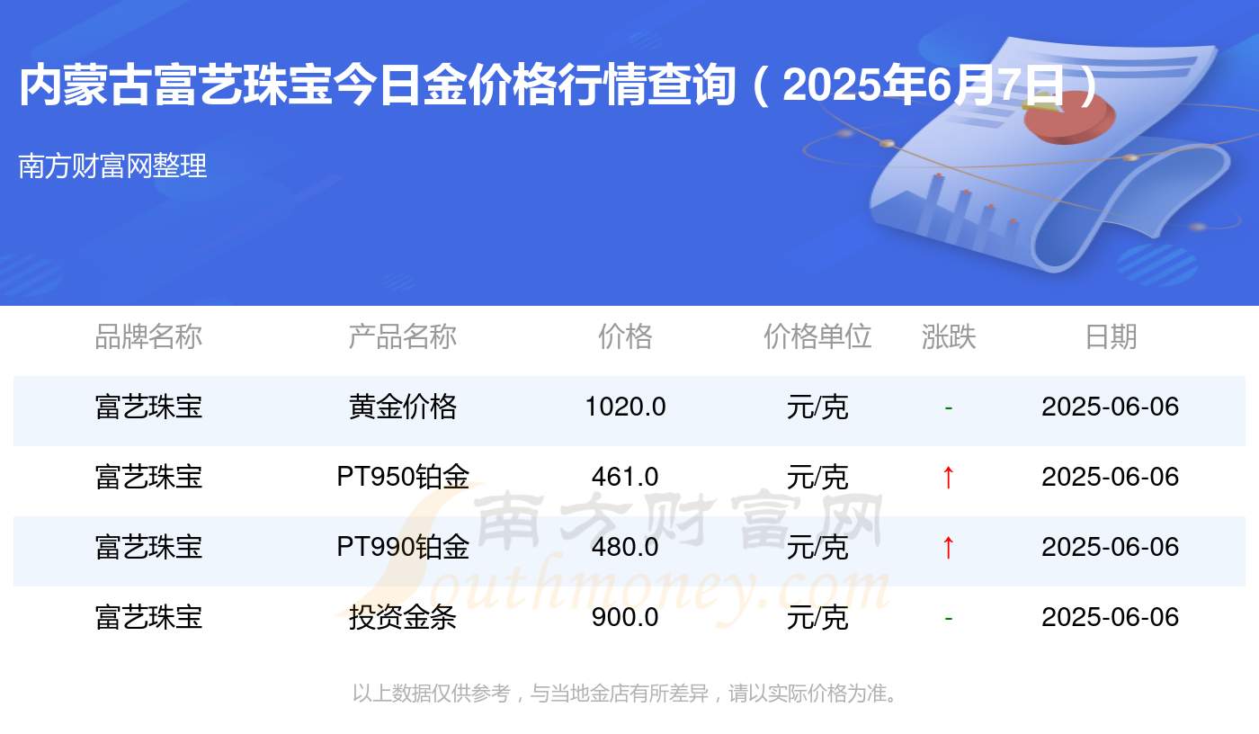 2025年6月7日内蒙古富艺珠宝黄金价格表_今日金价查询