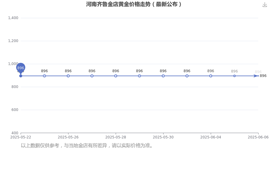 今日(2025年6月8日)河南齐鲁金店黄金价格为896.0元/克。