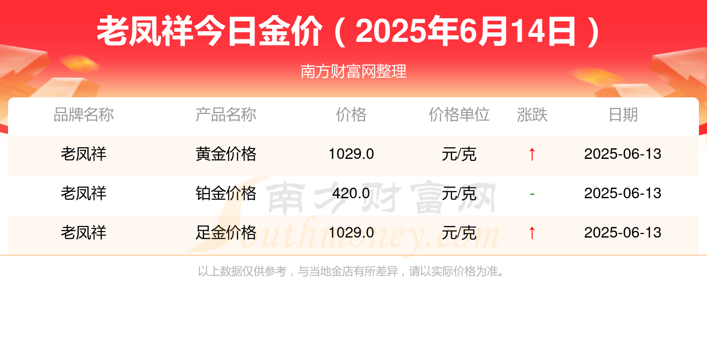 以上数据仅供参考,与当地金店有所差异,请以实际价格为准。