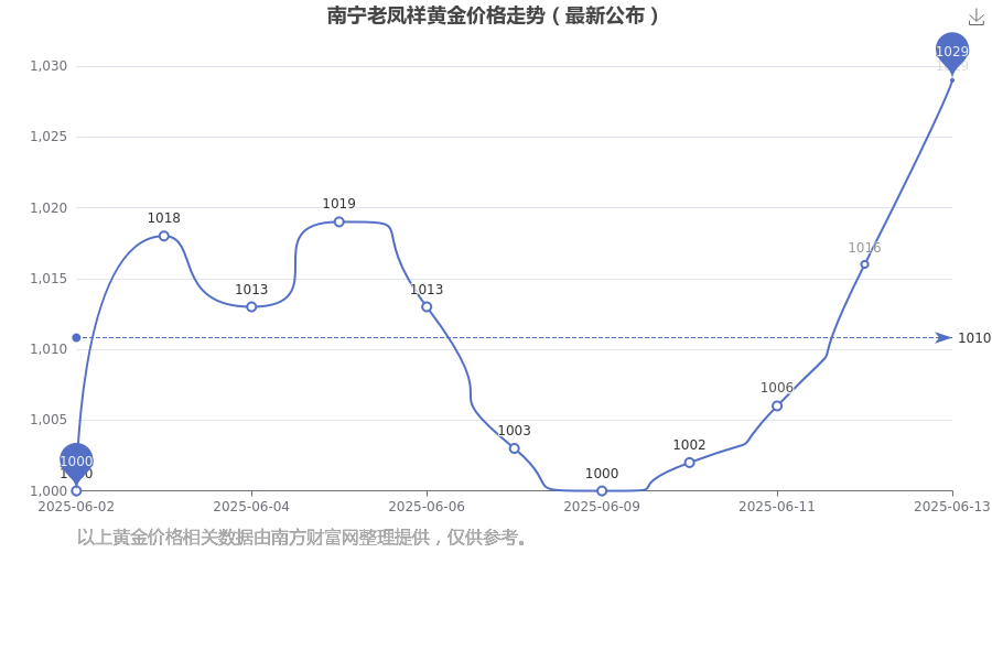 2025年6月15日当天,南宁老凤祥黄金价格的单价是 1029.0元/克。