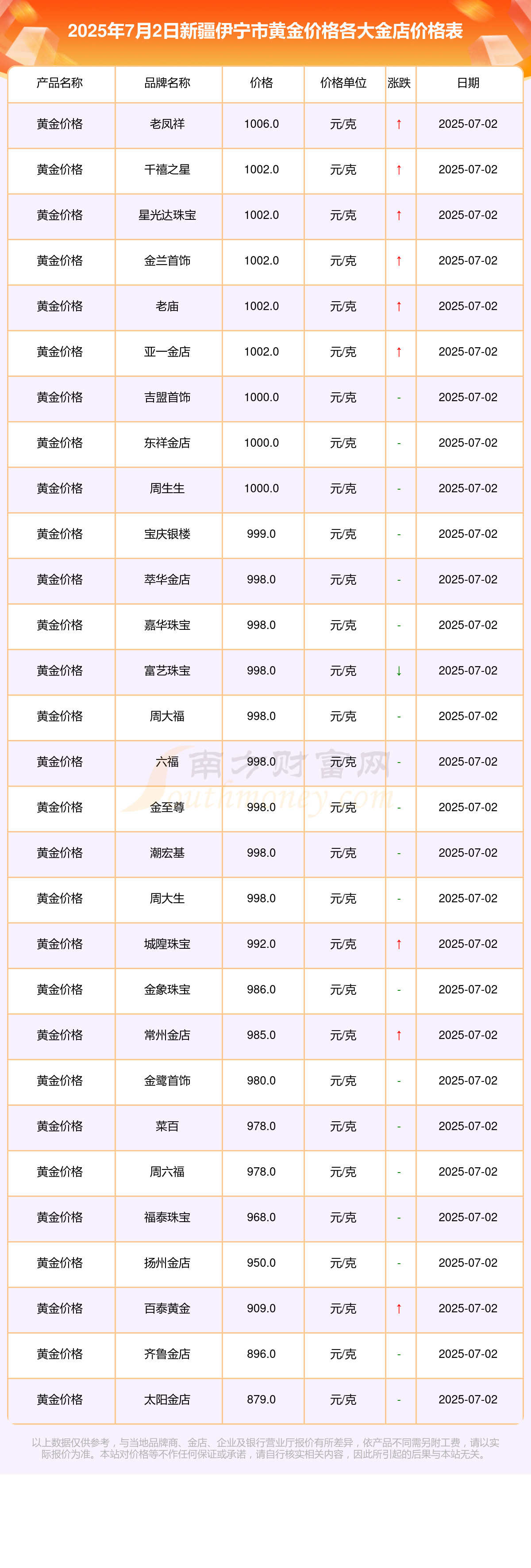 新疆伊宁市各大金店黄金价格一览,黄金价格金价今日是多少最新公布(2025年7月2日)