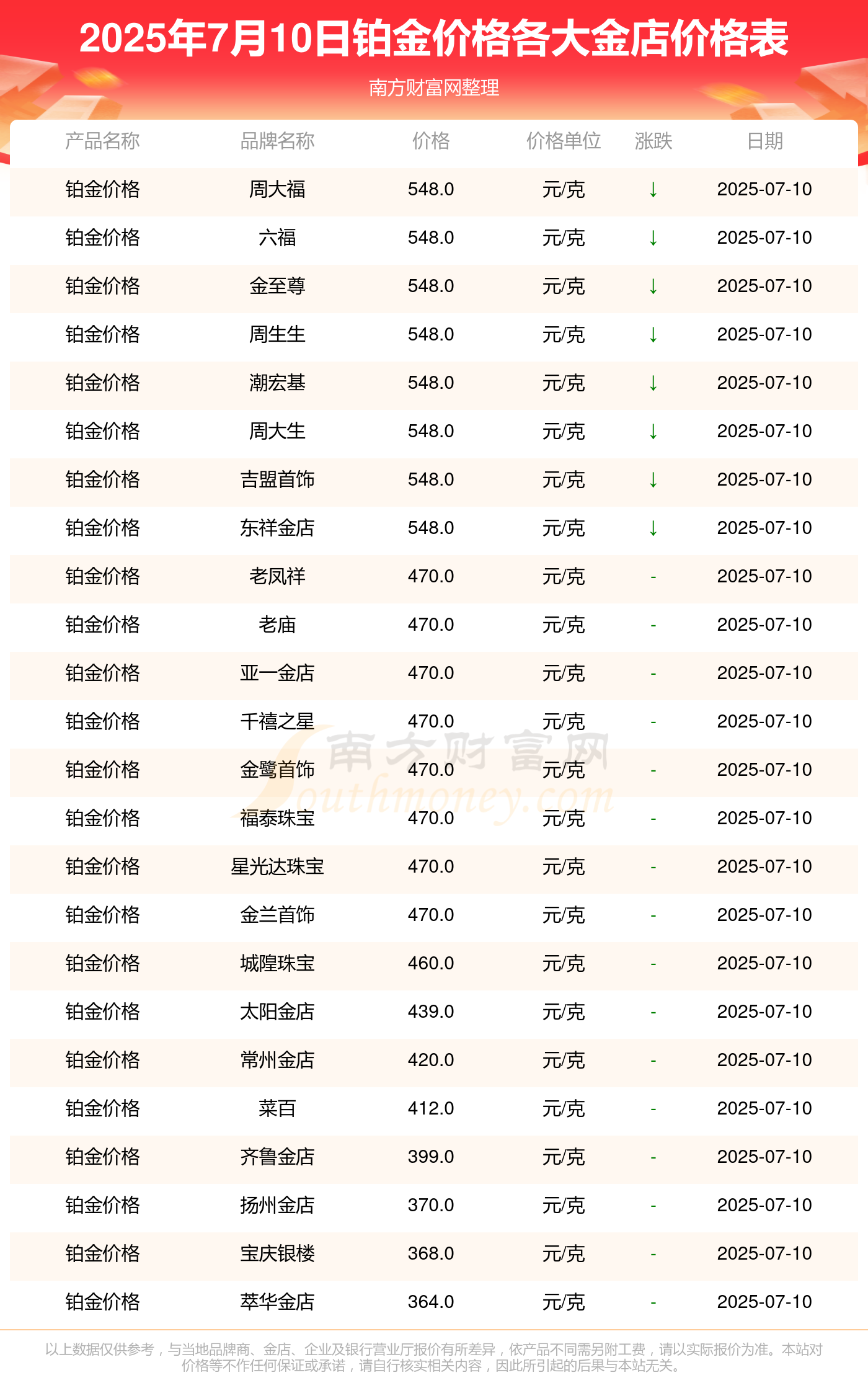 黄金价格持续走高的原因究竟为何??2025年7月10日各大金店铂金价格最新一览表