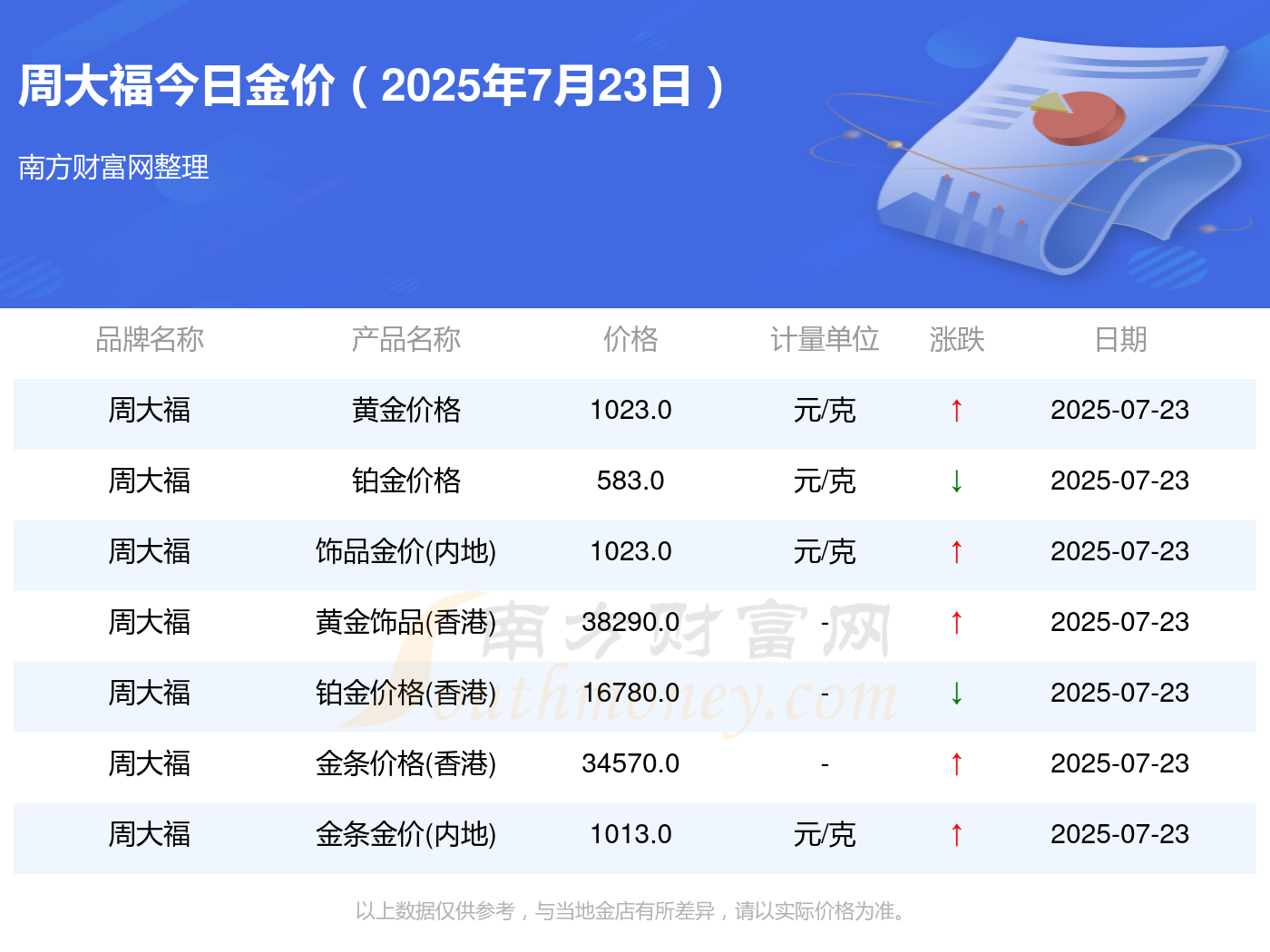 今日周大福黄金价格表公布 2025年7月23日