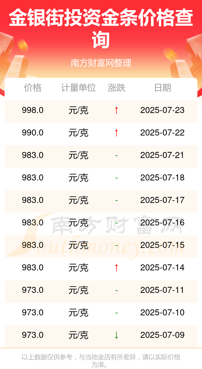 以上数据仅供参考,与当地品牌商、金店、企业及银行营业厅报价有所差异,依产品不同需另附工费,请以实际报价为准。本站对价格等不作任何保证或承诺,请自行核实相关内容,因此所引起的后果与本站无关。