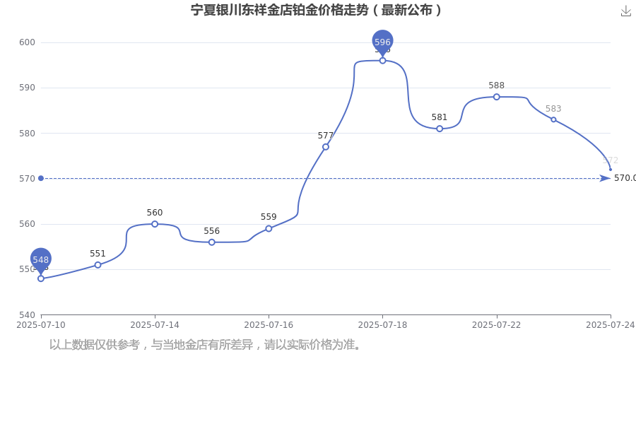 572.0元/克,这是宁夏银川东祥金店于 2025年7月24日所定的铂金价格。