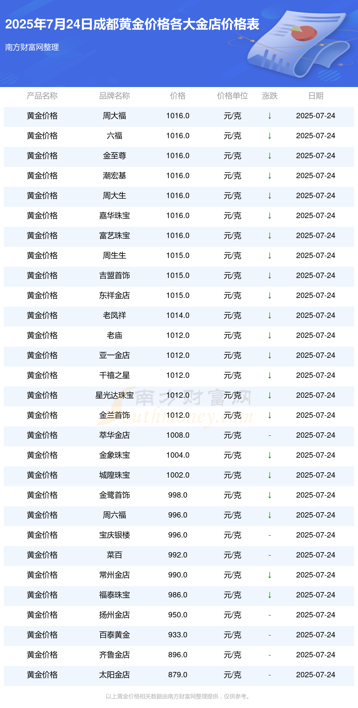 成都各大金店黄金价格一克多少钱?各大金店黄金价格公布(2025年7月24日)