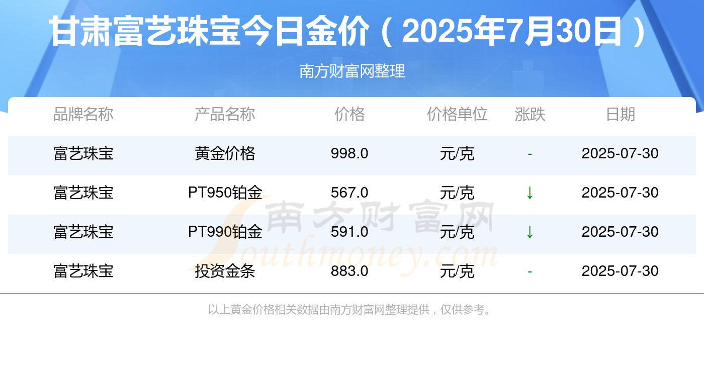 2025年7月30日}|甘肃富艺珠宝黄金价格一览 甘肃怎样换黄金能达到划算的效果?