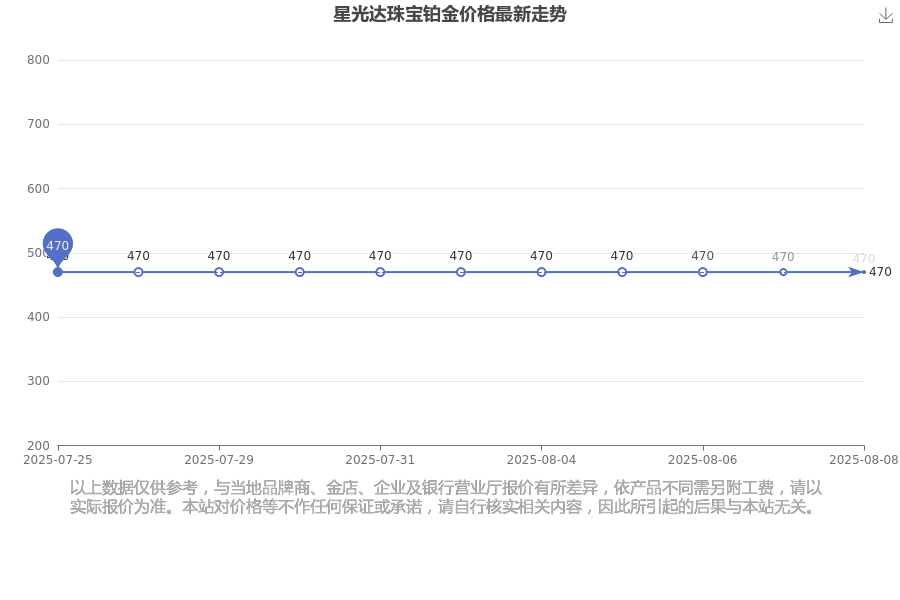 2025年8月8日星光达珠宝铂金价格为470.0元/克。