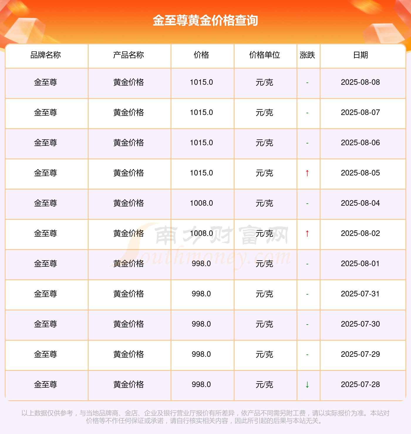 2025年8月10日金至尊黄金价格多少一克,最新价格来了解一下