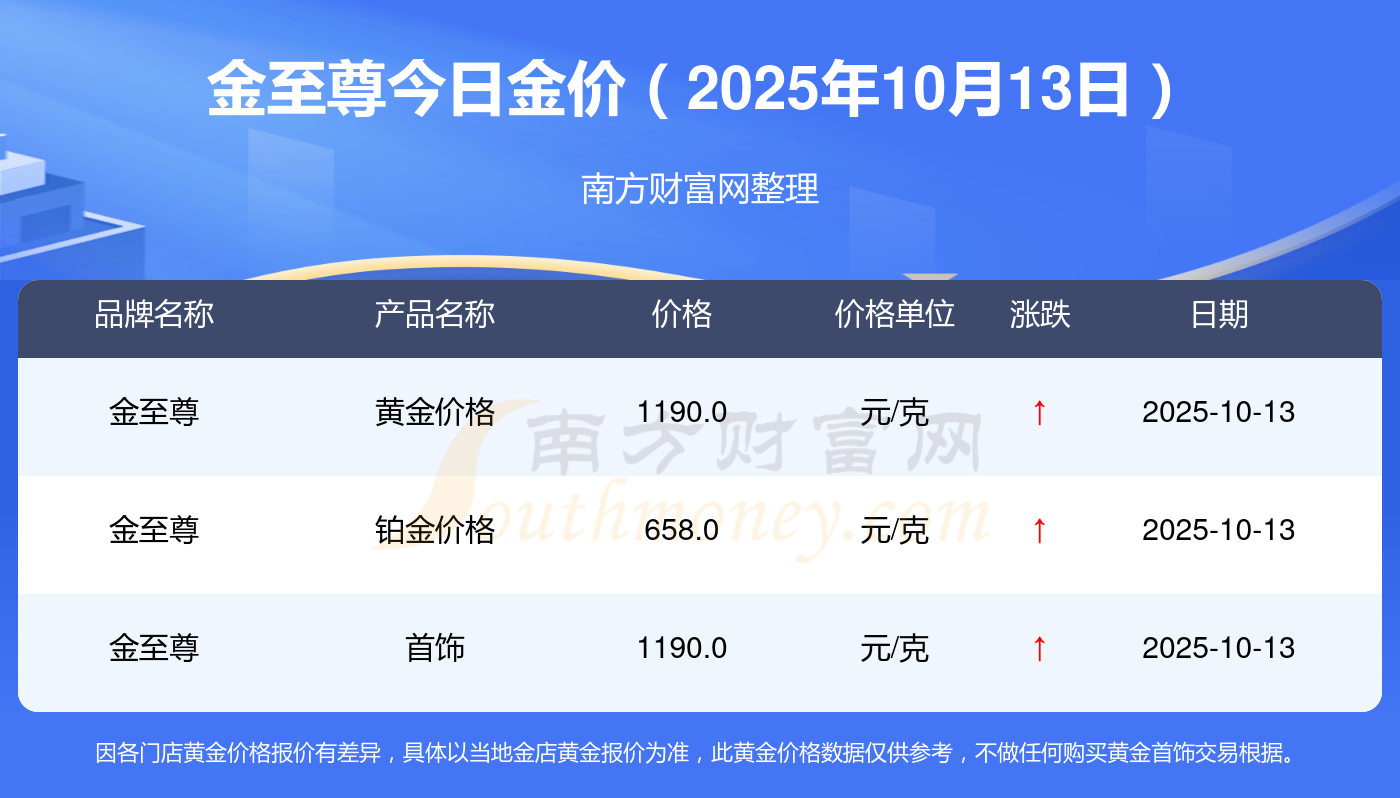 金至尊今日金价最新查询(2025年10月13日)