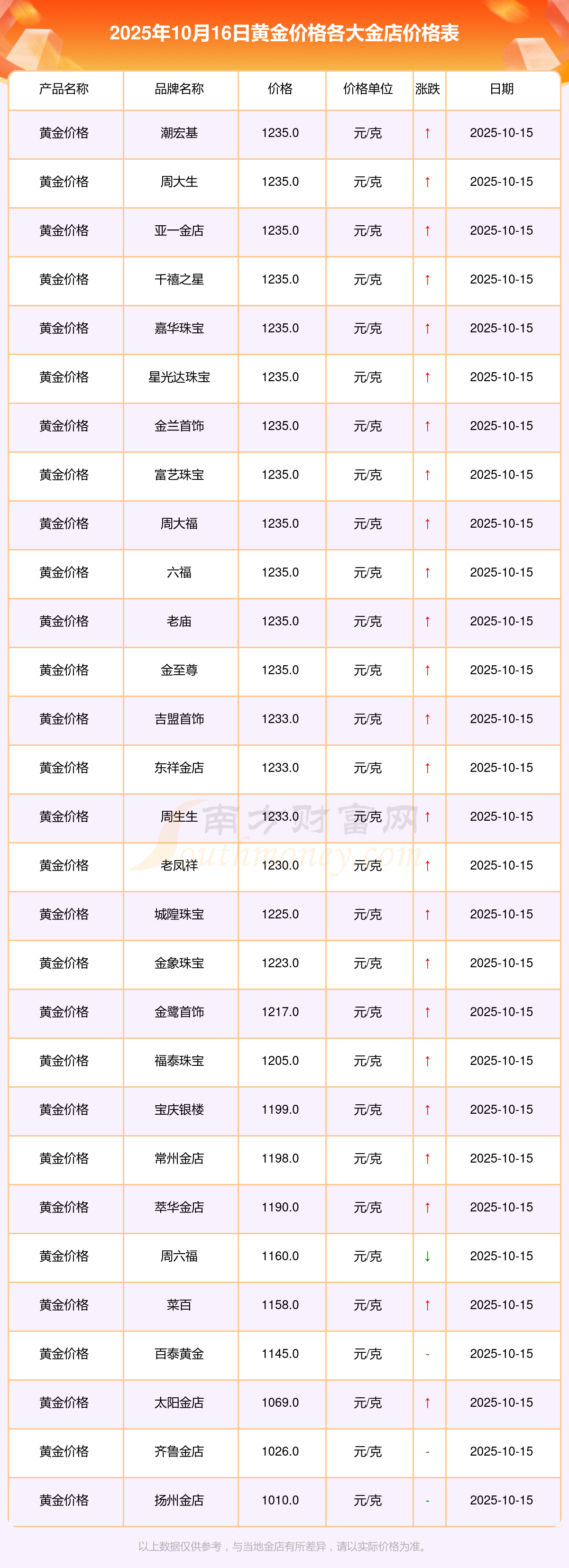 以上数据仅供参考,与当地金店有所差异,请以实际价格为准。