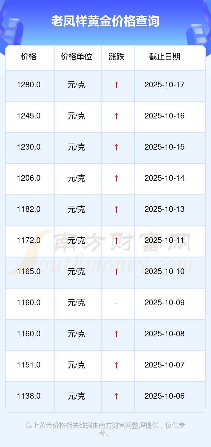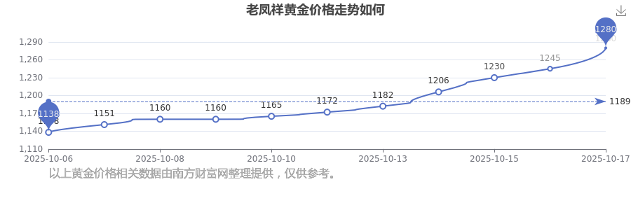 老凤祥今日黄金价格的最新市场行情价为1280.0元/克。