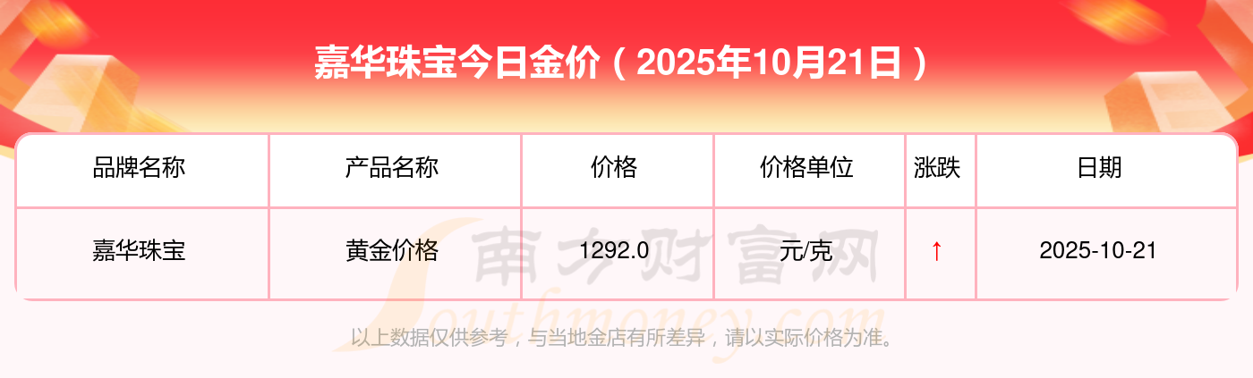 2025年10月21日嘉华珠宝黄金价格表_2025年金价多少钱一克