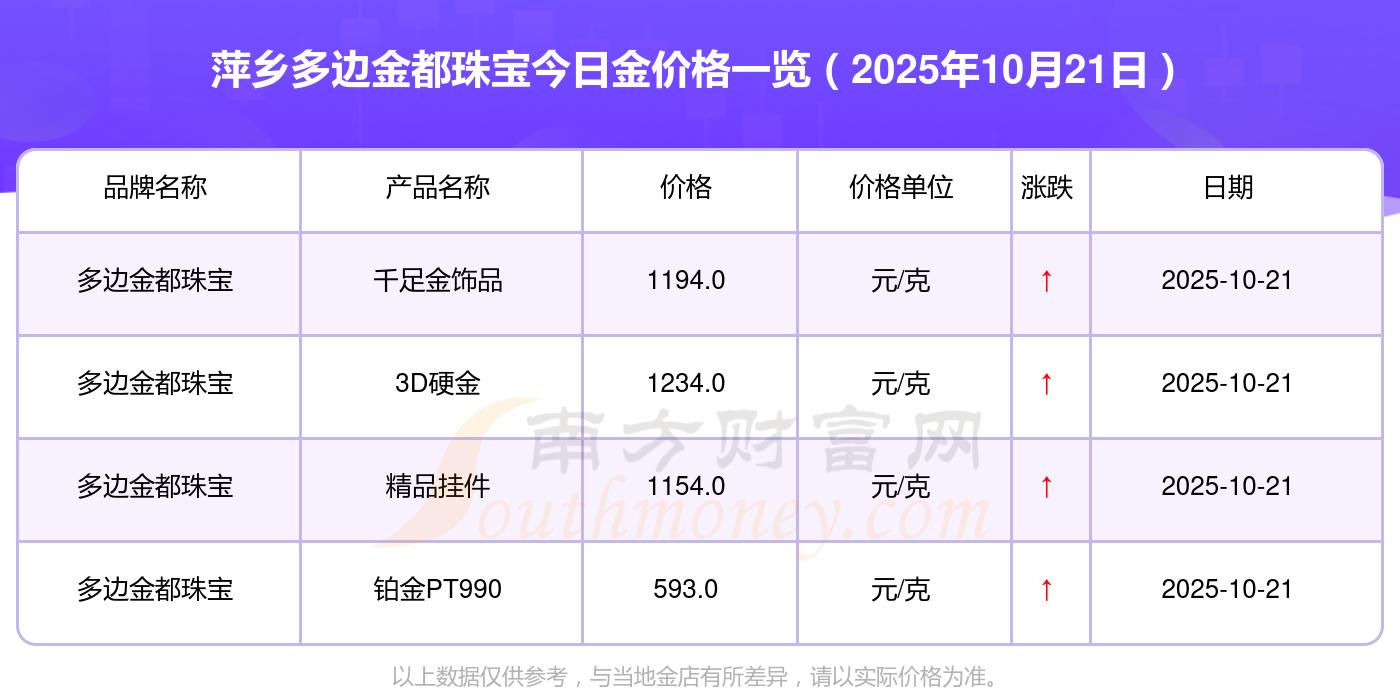 2025-10-21|萍乡多边金都珠宝金价查询 萍乡多边金都珠宝黄金价格今天多少钱1克?