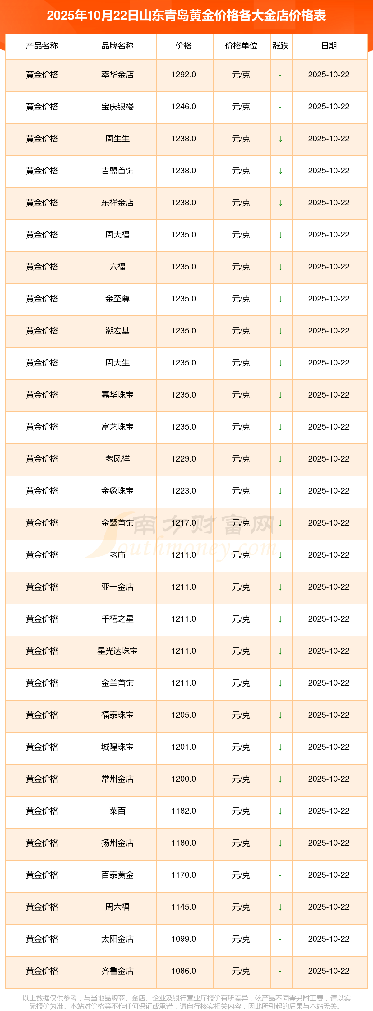 一、 山东青岛各金店黄金价格多少钱1克?山东青岛各金店黄金价格最新详情