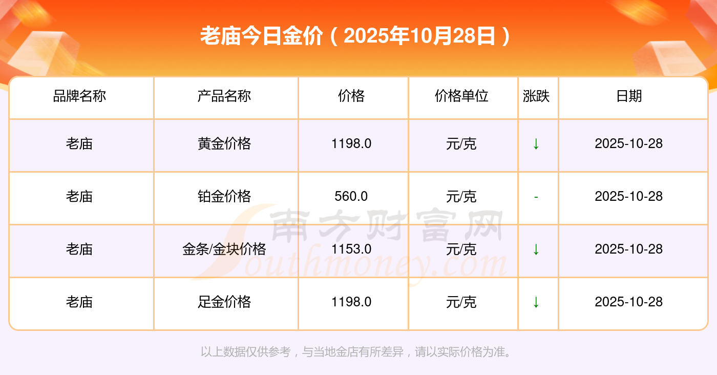 老庙黄金价格一克多少钱_今日金价查询(2025/10/28)