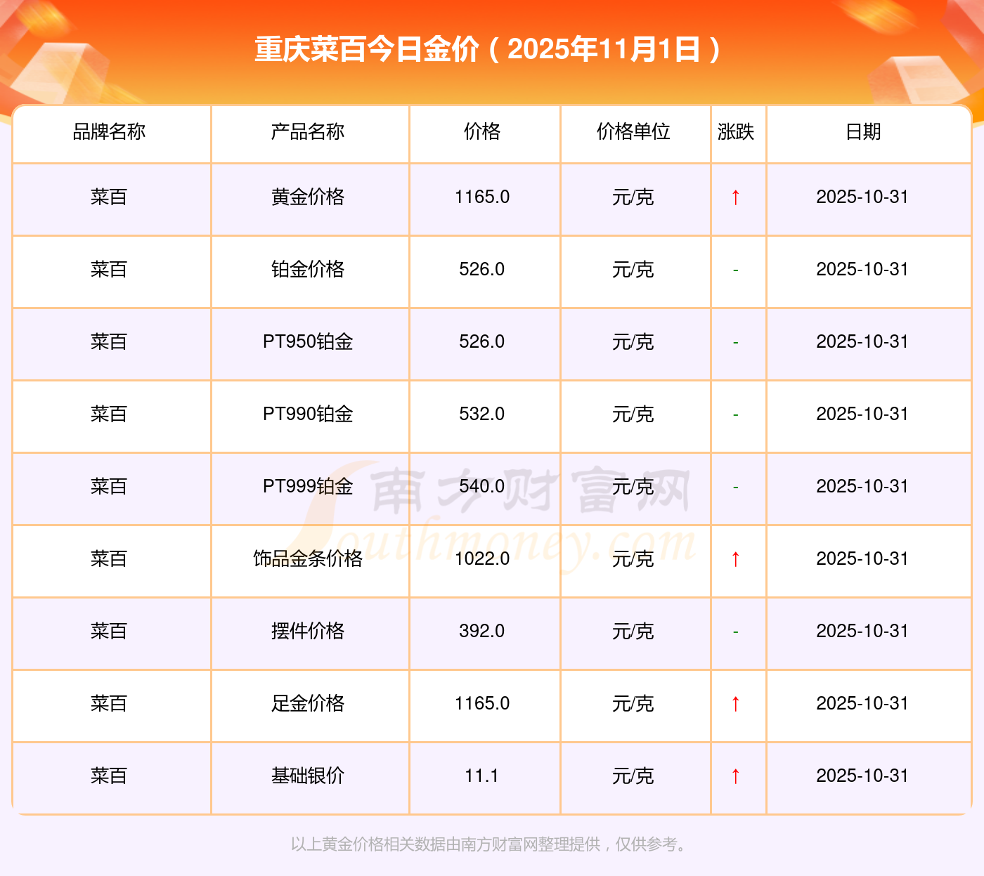 重庆菜百每克黄金在市场上卖多少钱:黄金价格1198.0元/克,铂金价格650.0元/克,饰品金价(内地)1198.0元/克,黄金饰品(香港)44660.0,铂金价格(香港)18640.0,金条价格(香港)40080.0,金条金价(内地)1058.0元/克,黄金价格1200.0元/克,铂金价格560.0元/克,足金价格1200.0元/克,黄金价格1135.0元/克。