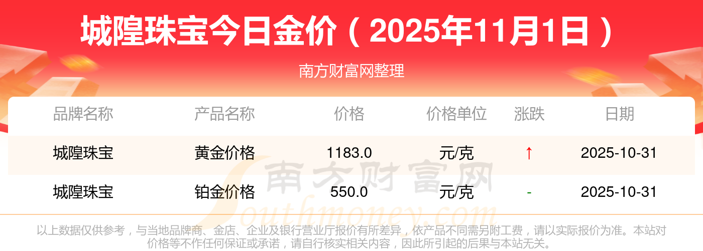2025年11月1日,周大福、周大福、周大福、周大福、周大福、周大福、周大福、老凤祥、老凤祥、老凤祥、周六福等各大金店品牌黄金价格今日价格如下:周大福1198.0元/克、周大福650.0元/克、周大福1198.0元/克、周大福44660.0、周大福18640.0、周大福40080.0、周大福1058.0元/克、老凤祥1200.0元/克、老凤祥560.0元/克、老凤祥1200.0元/克、周六福1135.0元/克。